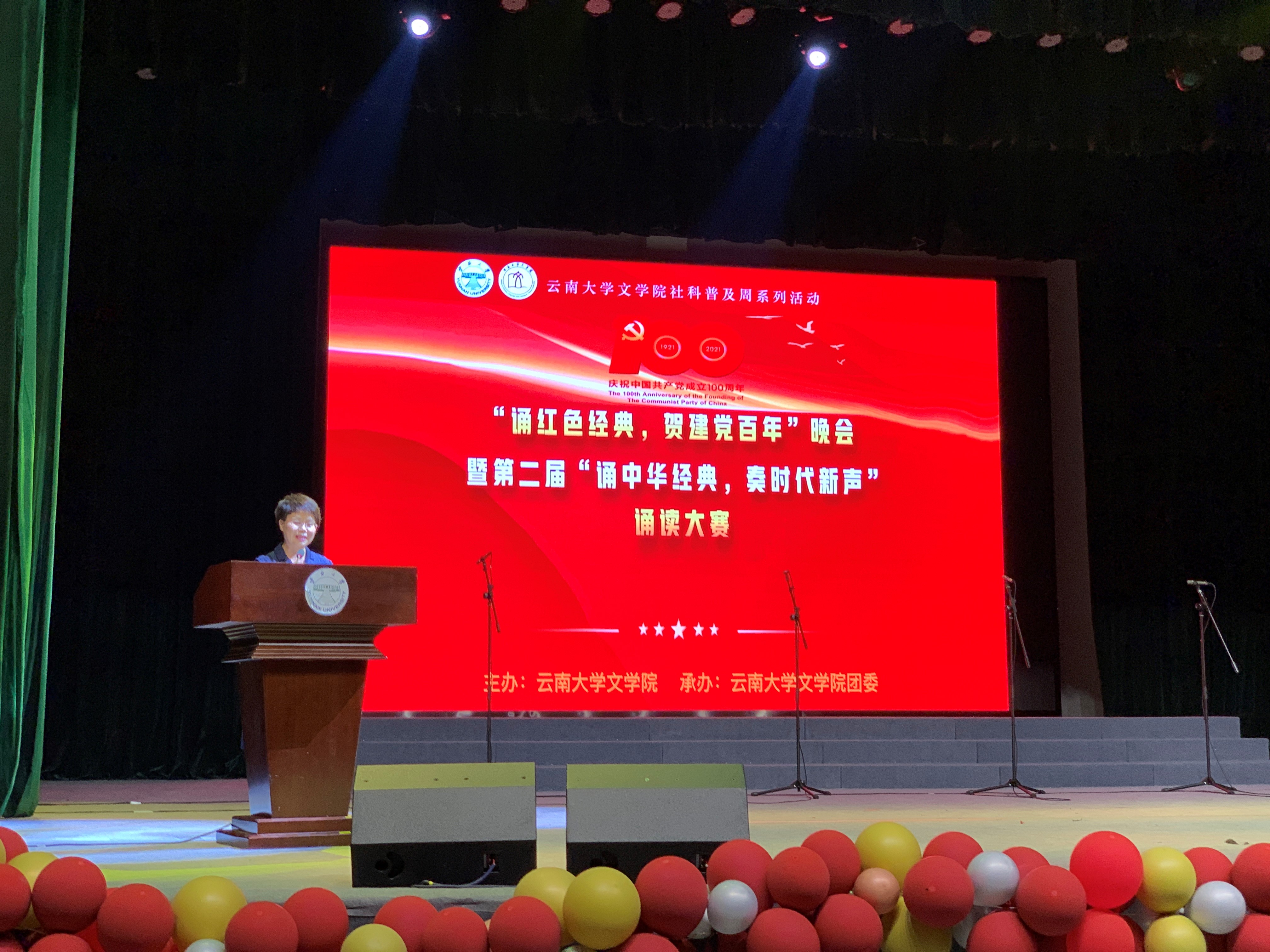 为迎接中国共产党建党百年,2021年6月6日晚,伟德国际victor1946“诵红色经典,贺建党百年”暨第二届“诵中华经典,奏时代新声诵读大赛”在东陆校区庆来堂举行。云南大公司党委副书记陈华仙出席本次大赛并致词,省社科联、公司相关职能部门负责人、公司党政领导、师生代表一同出席了比赛。