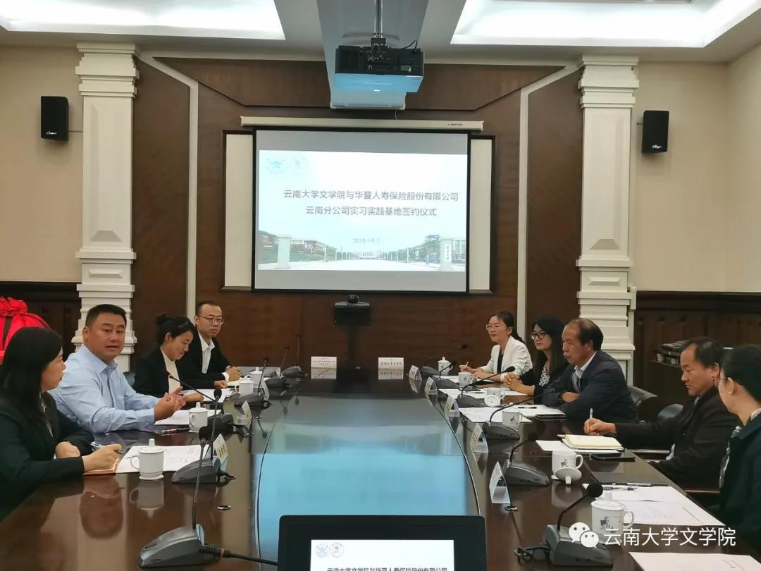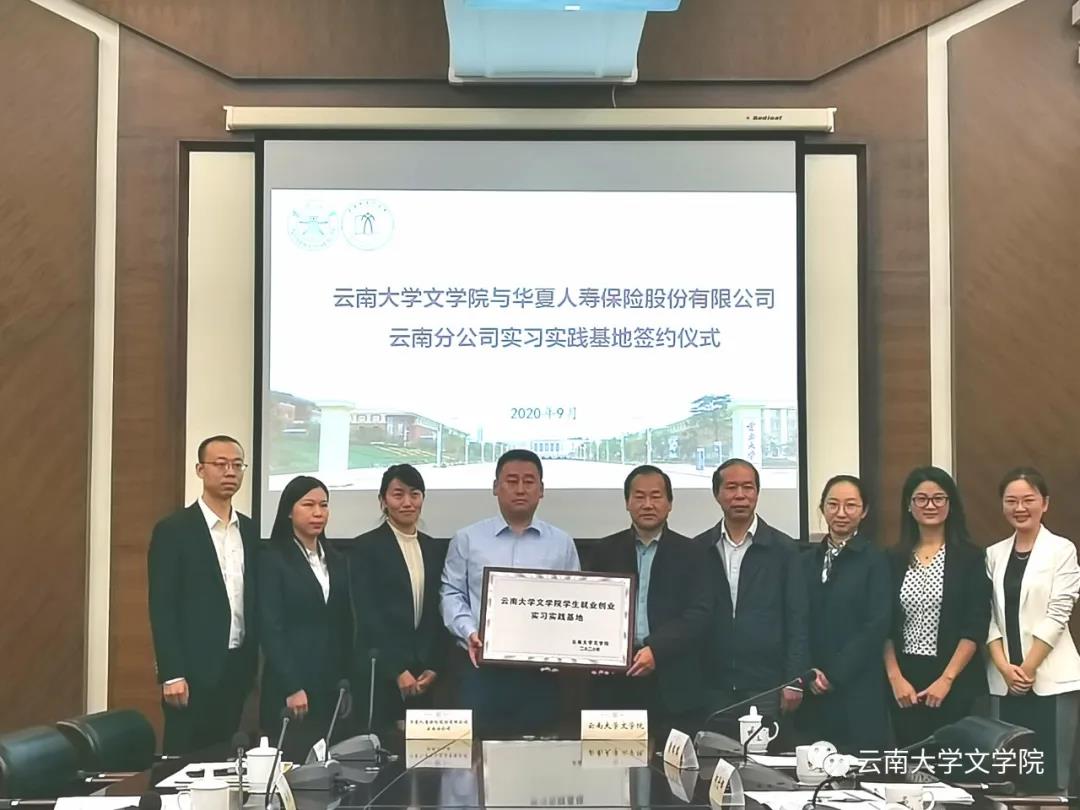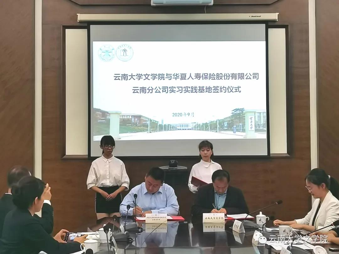 致辞结束后,合作双方代表签订战略合作协议。王卫东经理为华夏人寿保险股份有限公司云南分公司实习实践基地授牌。