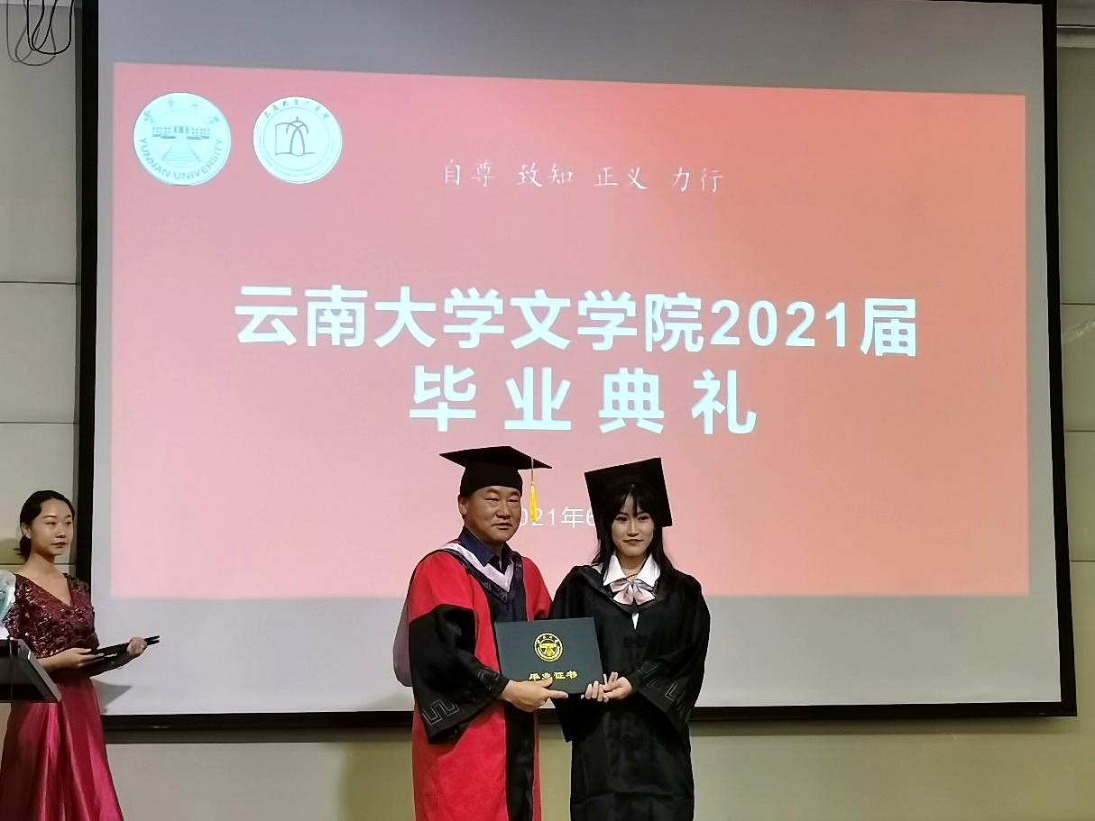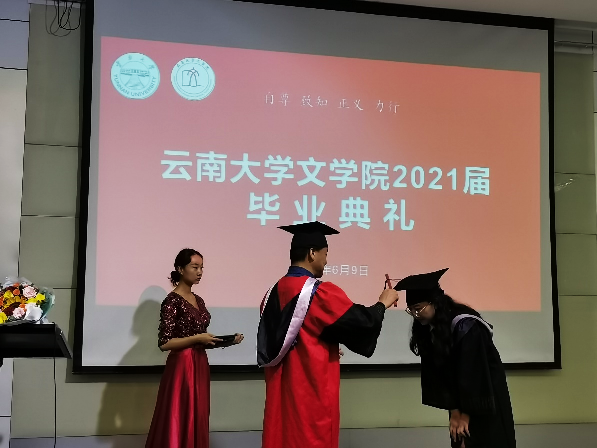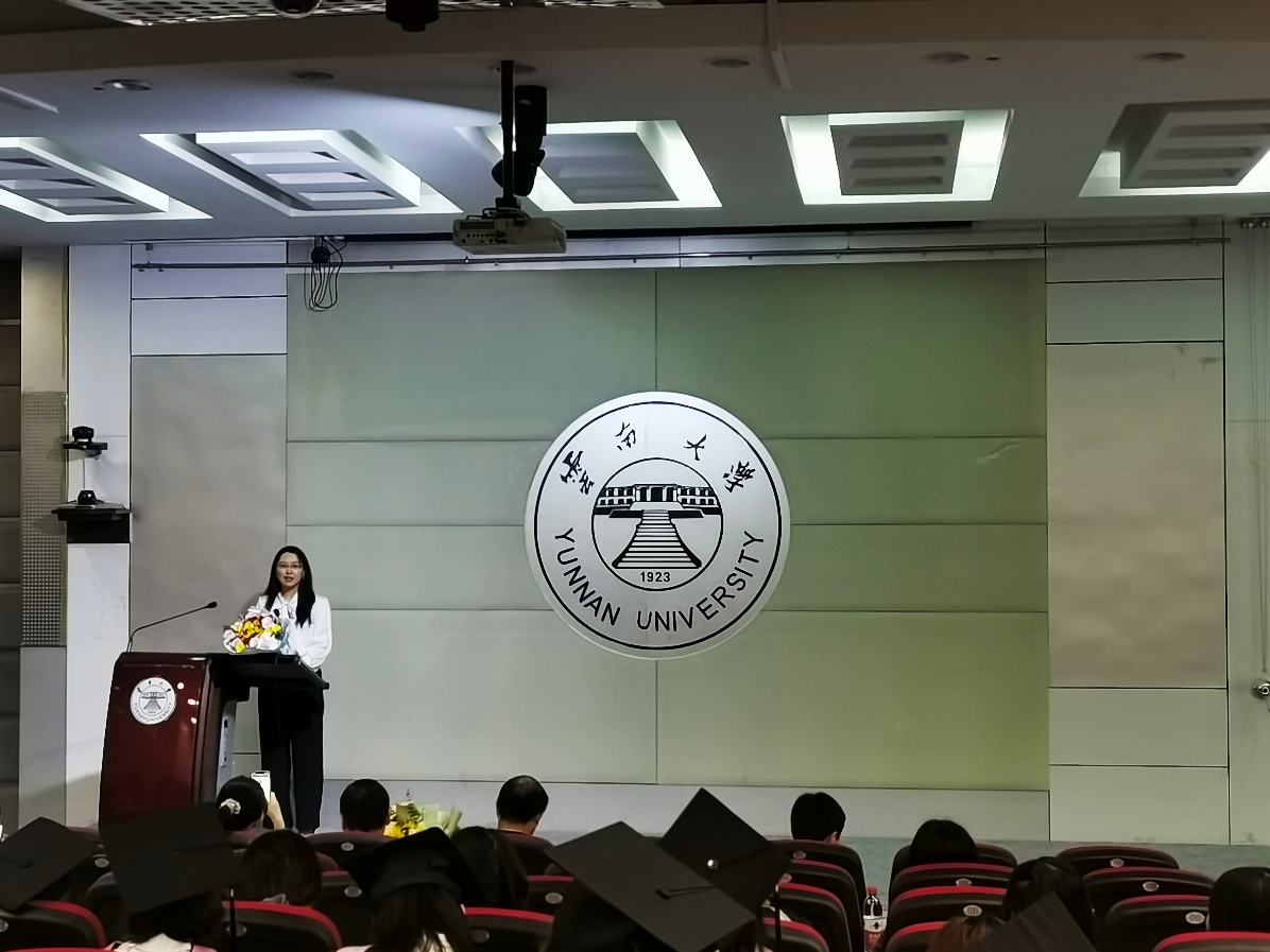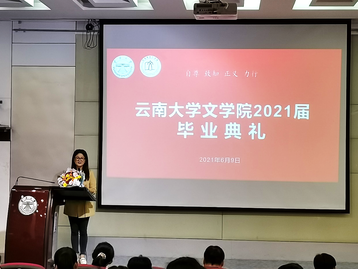 何丹娜副书记主持毕业典礼,并对毕业生表达了殷切期盼和美好祝愿,希望毕业生们始终铭记“自尊、致知、正义、力行”的云大校训,发扬“会泽百家、至公天下”的云大精神,祝毕业生们青春的生命之舟在新的岁月港湾里启航,直挂云帆,乘风破浪,新的人生道路上,扬帆击鼓,逐梦前行。