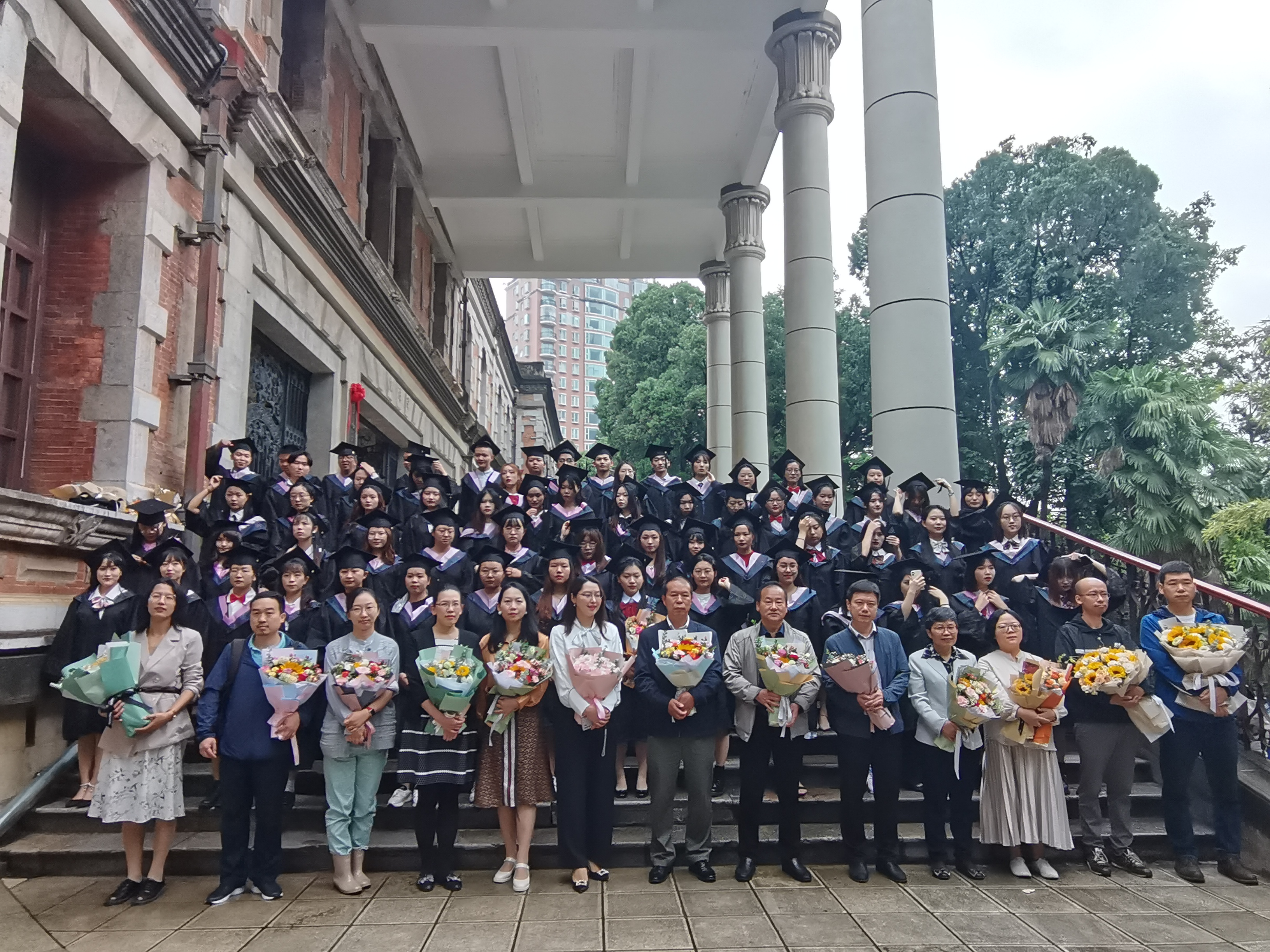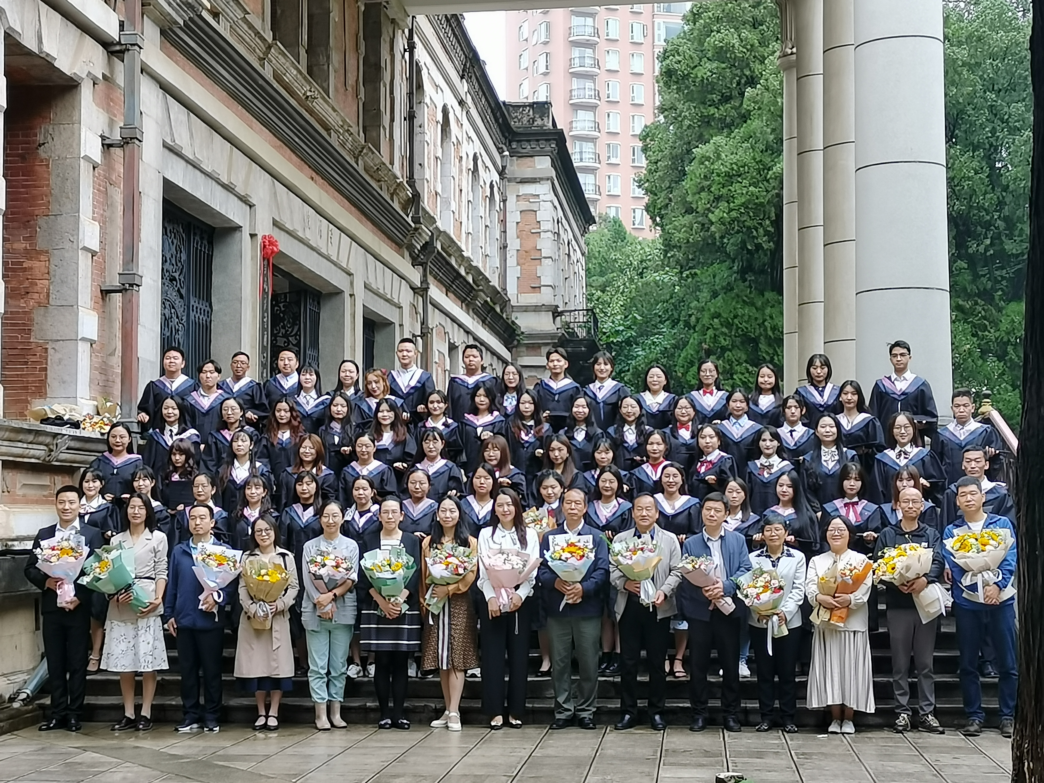 借本次毕业典礼之际,毕业生以班级为单位合影留恋。