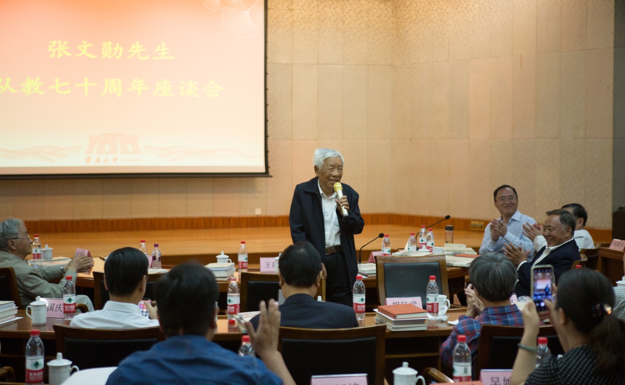 七十载育英才,七十载桃李满园,老中青三代齐聚一堂,畅谈人生之路、学术之路。张文勋先生为中文系学术研究和团队建设做出了巨大贡献,其爱岗敬业、艰苦奋斗、无私奉献的精神品质也将薪火相传,生生不灭,影响一代又一代学子。