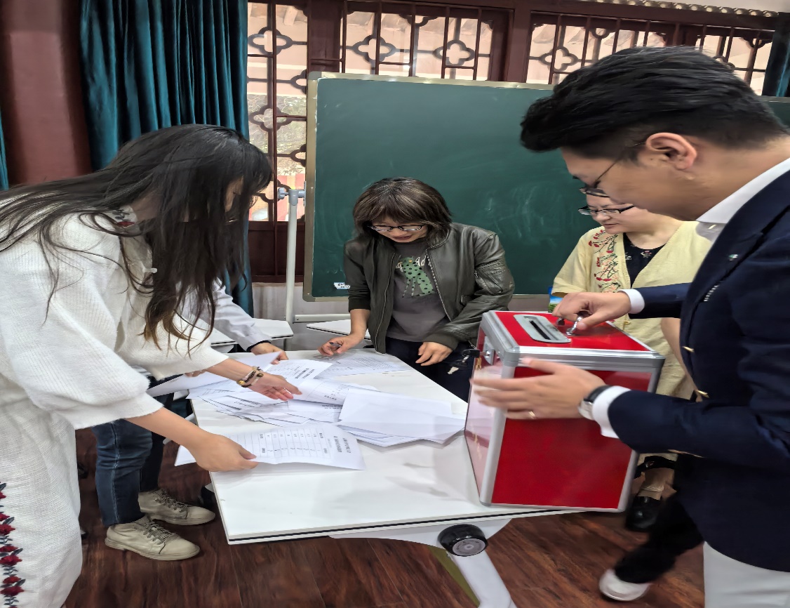 新一届工会委员会召开第一次全体会议,以无记名投票方式选举魏帆同志为新一届工会主席、谢小刚同志为工会副主席,并明确了委员的工作分工。