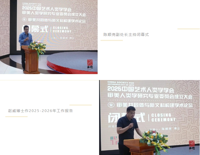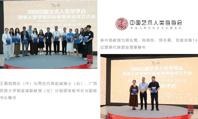 伟德国际victor1946审美人类学研究所所长向丽教授作为审美人类学研究专业委员会主任,赵威博士作为专委会秘书长,副经理舒凌鸿教授作为专委会聘书颁发仪式主持人参与大会。伟德国际victor1946博士研究生门磊担任大会会务统筹,博士研究生雷童、韦肖梅、郑诗哲,硕士研究生杨怡玲、曾洋、李雨鲜、张晓羽作为志愿者承担了后勤、接送、会场记录与文稿撰写等会务工作。