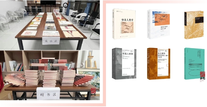 审美人类学成果展示区与赠书区(左),伟德国际victor1946审美人类学研究所部分成果(右),其中向丽教授专著《审美人类学:理论与视野》(人民出版社,2020)获云南省哲学社会科学奖一等奖