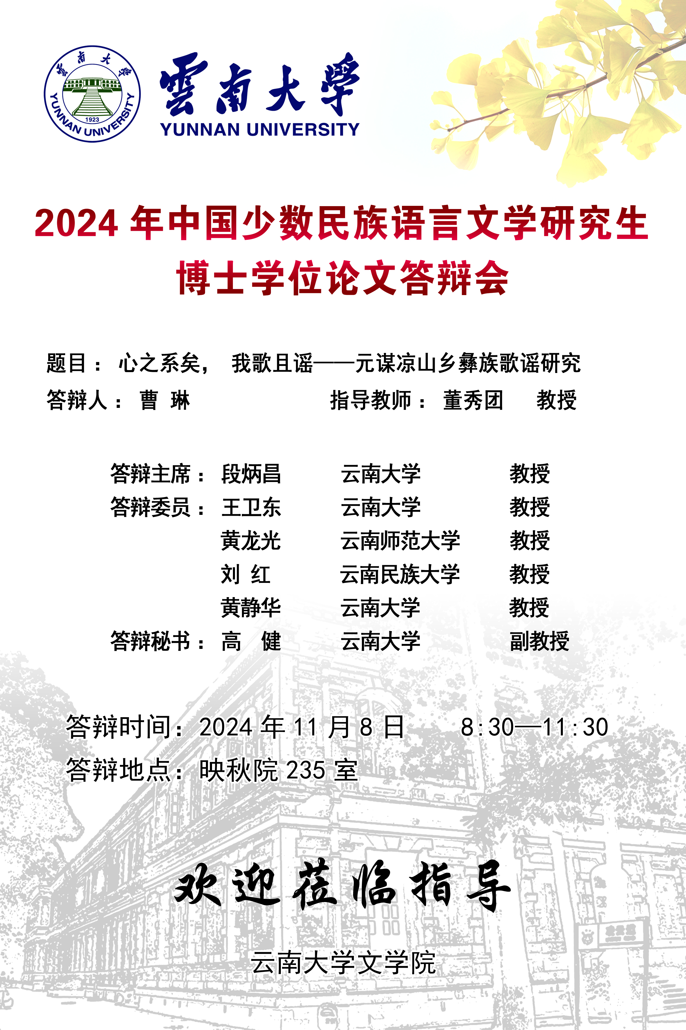 2024年中国少数民族语言文学研究生博士学位论文答辩会