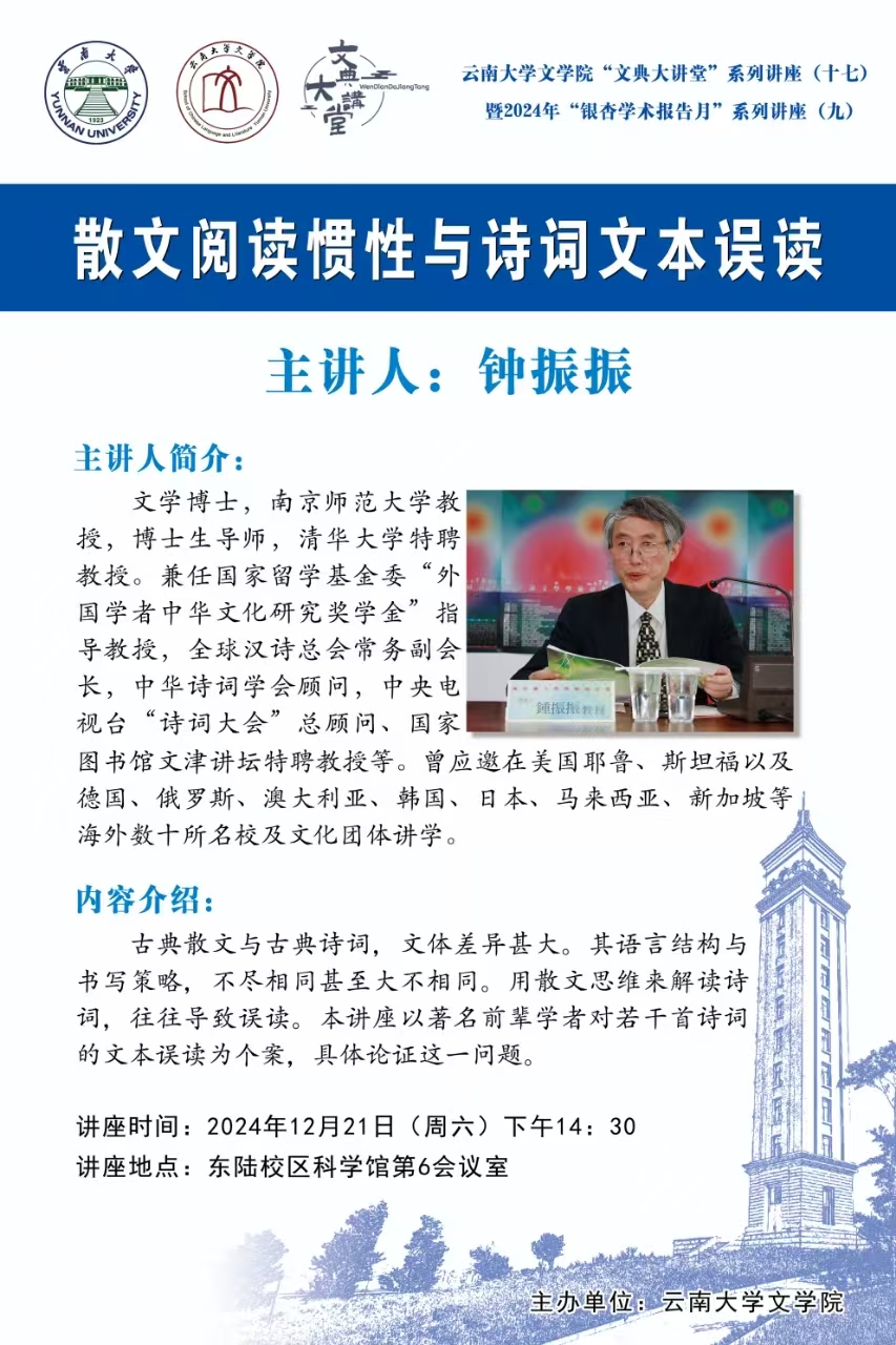 讲座通知:散文阅读惯性与诗词文本误读