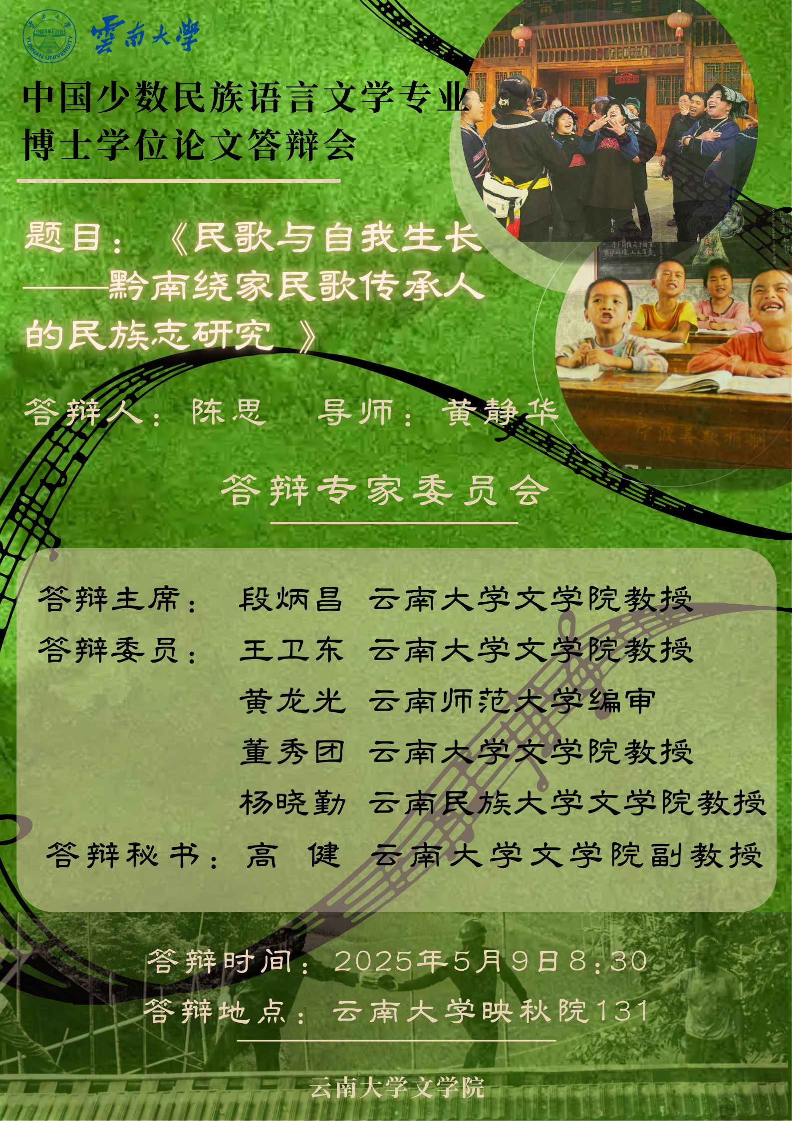 中国少数民族语言文学专业博士学位论文答辩会:《民歌与自我生长——黔南绕家民歌传承人的民族志研究》